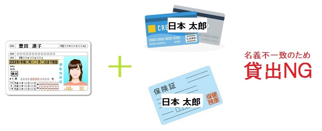 健康保険証の場合も免許証の名義と一致していないと借りられない